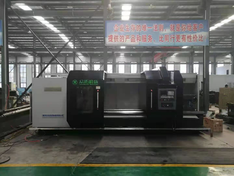 我公司CK61125機(jī)床為大型臥式平床身數(shù)控車床?;機(jī)床數(shù)控系統(tǒng)采用KND1000t數(shù)控系統(tǒng),床身采用755mm導(dǎo)軌,車削主傳采用液壓4檔無級變速,兩個聯(lián)動控制軸,Z軸和X軸采用滾珠絲杠副加交流伺服電機(jī)實(shí)現(xiàn)縱向和橫向移動,半閉環(huán)控制,具有很好的定位精度和重復(fù)定位精度。尾座采用上下式結(jié)構(gòu),更好的適用于工件的支撐及角度調(diào)...…