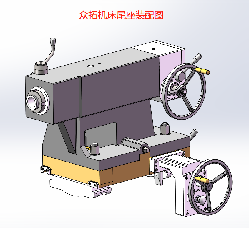 本機(jī)床尾座為手動結(jié)構(gòu),具有足夠的承載能力。尾座的移動由拖板拖掛拖動尾座縱向移動,尾座移動方便快捷,宜人性強(qiáng)。尾座由上、下體兩大部分組成,尾座上體內(nèi)裝有尾座套筒、尾座套筒移動機(jī)構(gòu)和主軸中心調(diào)整機(jī)構(gòu)。套筒鎖緊為手動。